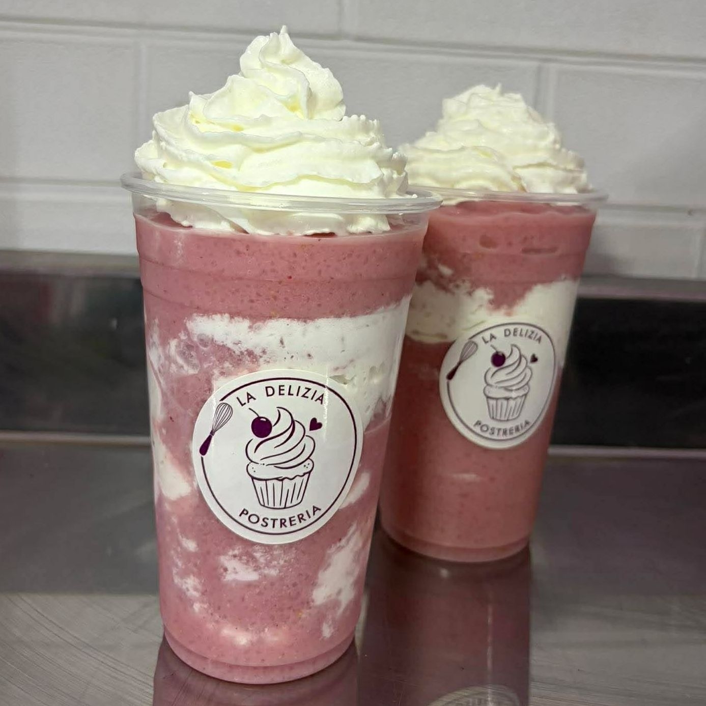 Deliciosa malteada de fresa acompañada con crema batida.