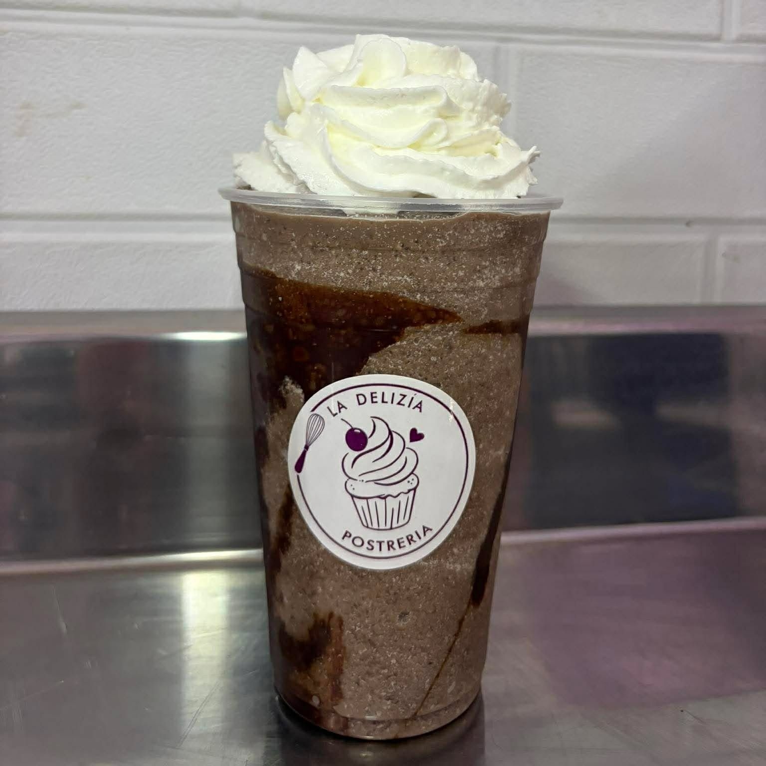 Deliciosa malteada de chocolate acompañada de crema batida.