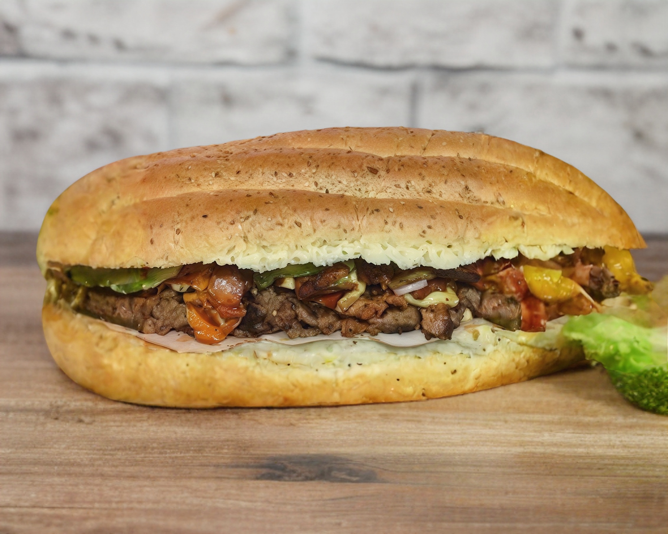 Pan con carne de bistec y queso asadero.