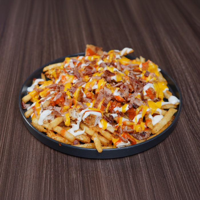 200gr de tenders picados con papas a la francesa bañados con salsa buffalo, aderezo ranch y tocino.