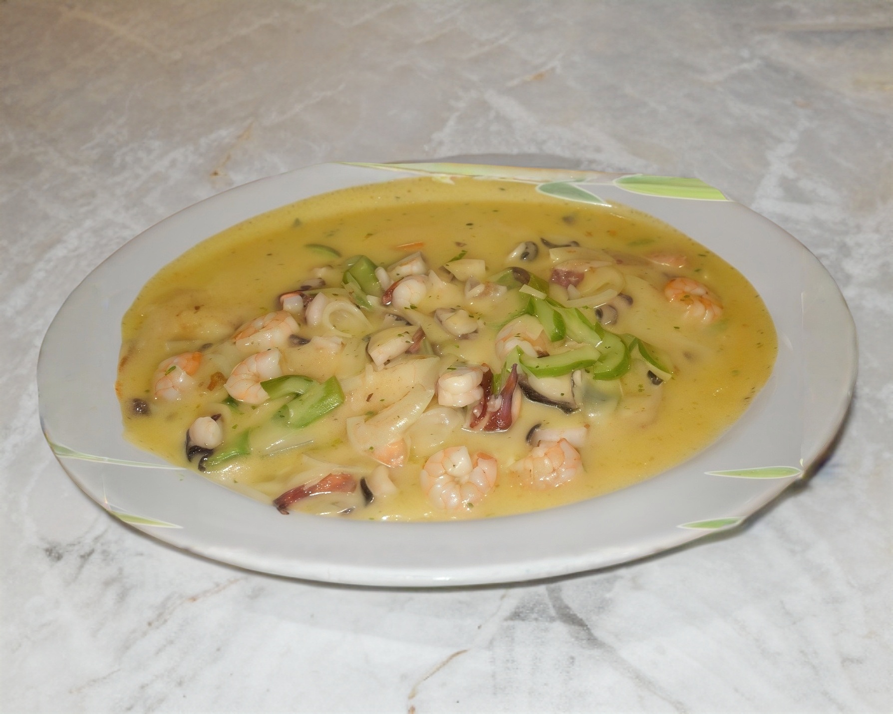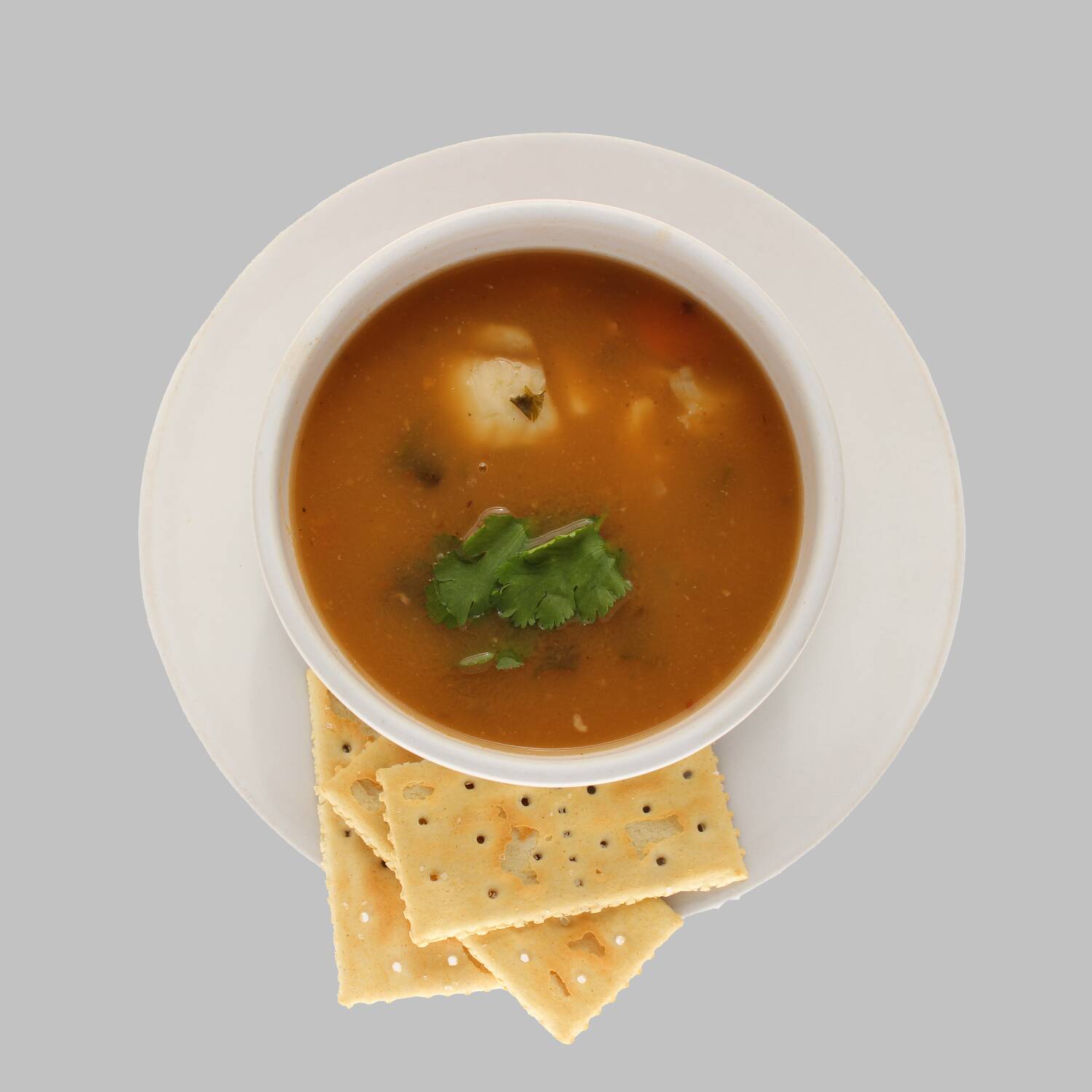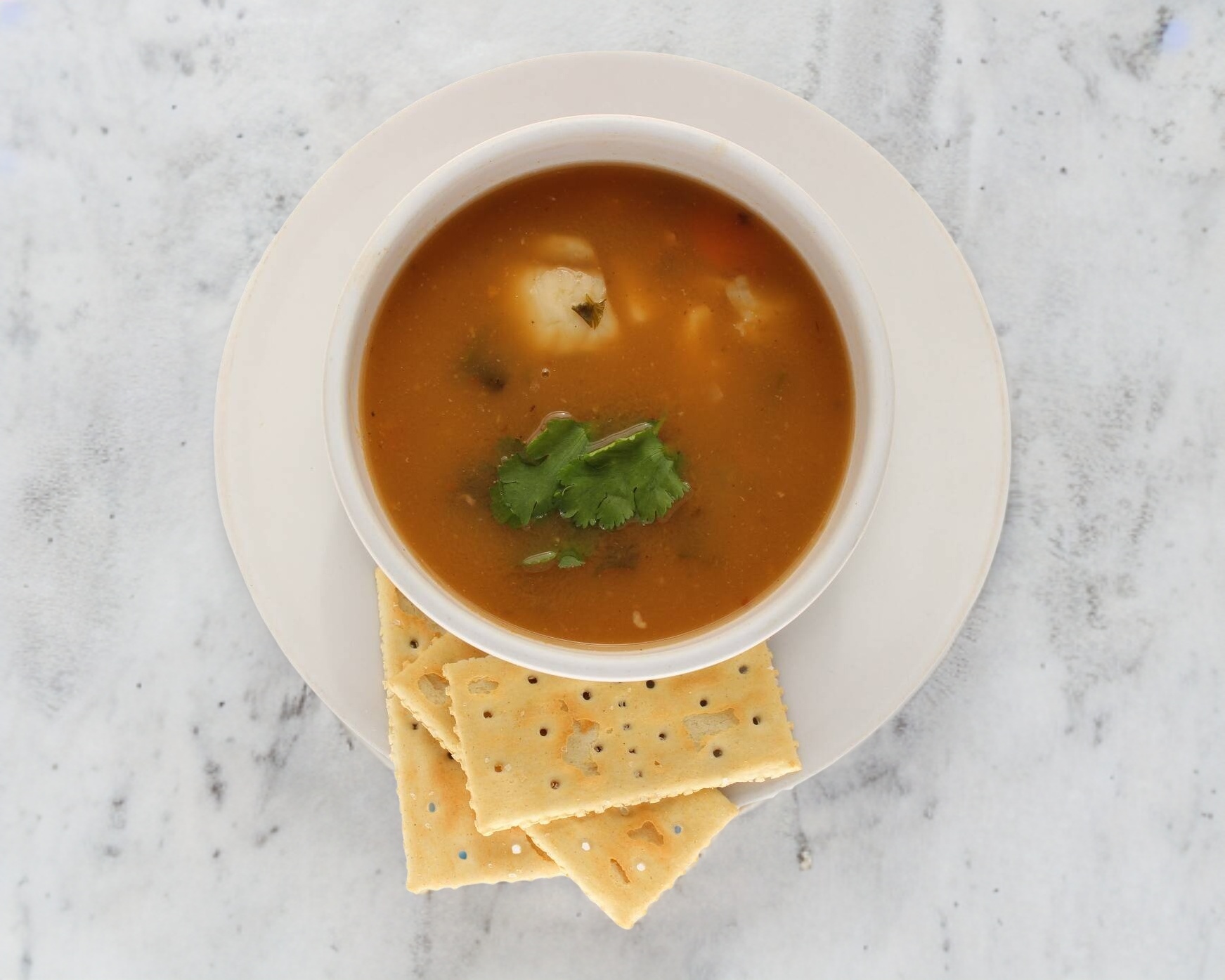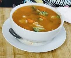 1 litro de caldo con filete, camarón, surimi y calamar.