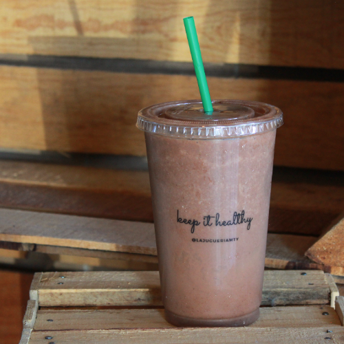 Plátano, cacao, miel, leche de almendra, dátil, hemp