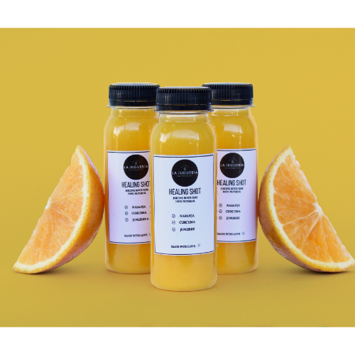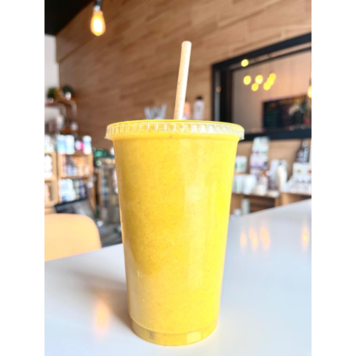Mezcla dorada, naranja, piña y leche de coco. Antiinflamatorio, refuerza sistema inmune, desintoxicante. .