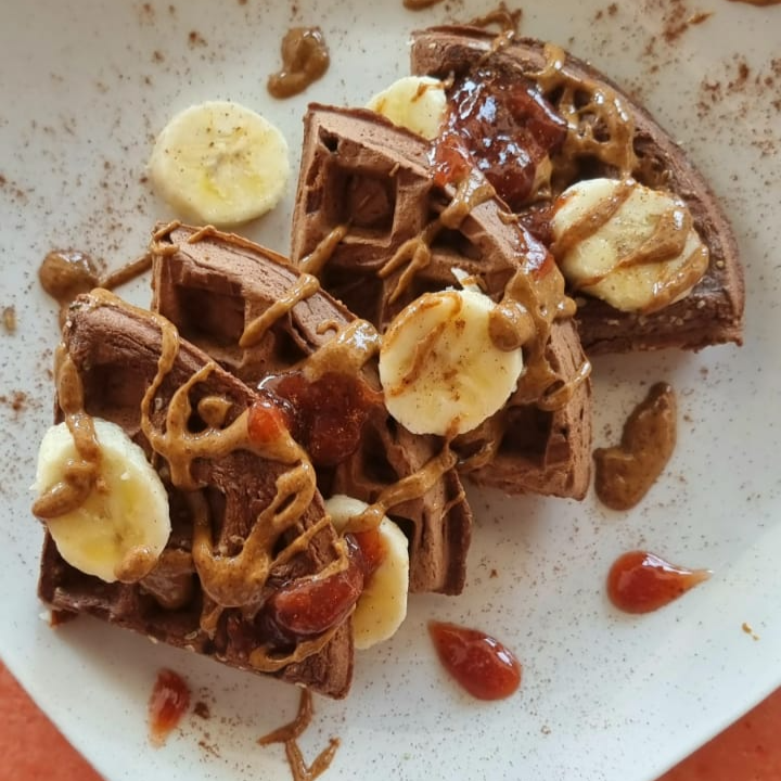 Waffles de harina de avena con cacao preparados con la fruta de temporada