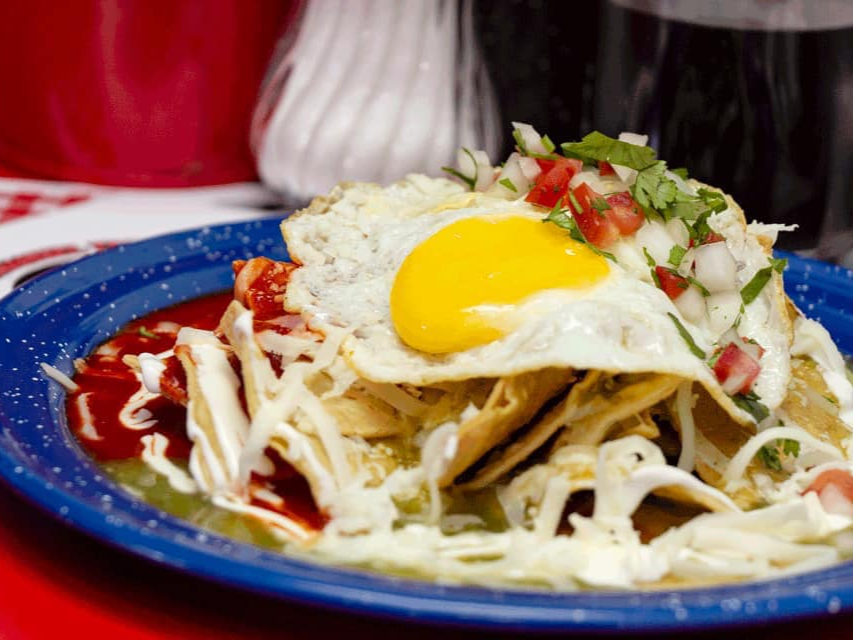 Chilaquiles Rojos, Frijoles Refritos, Huevo Estrellado y 1 Guiso a Elegir