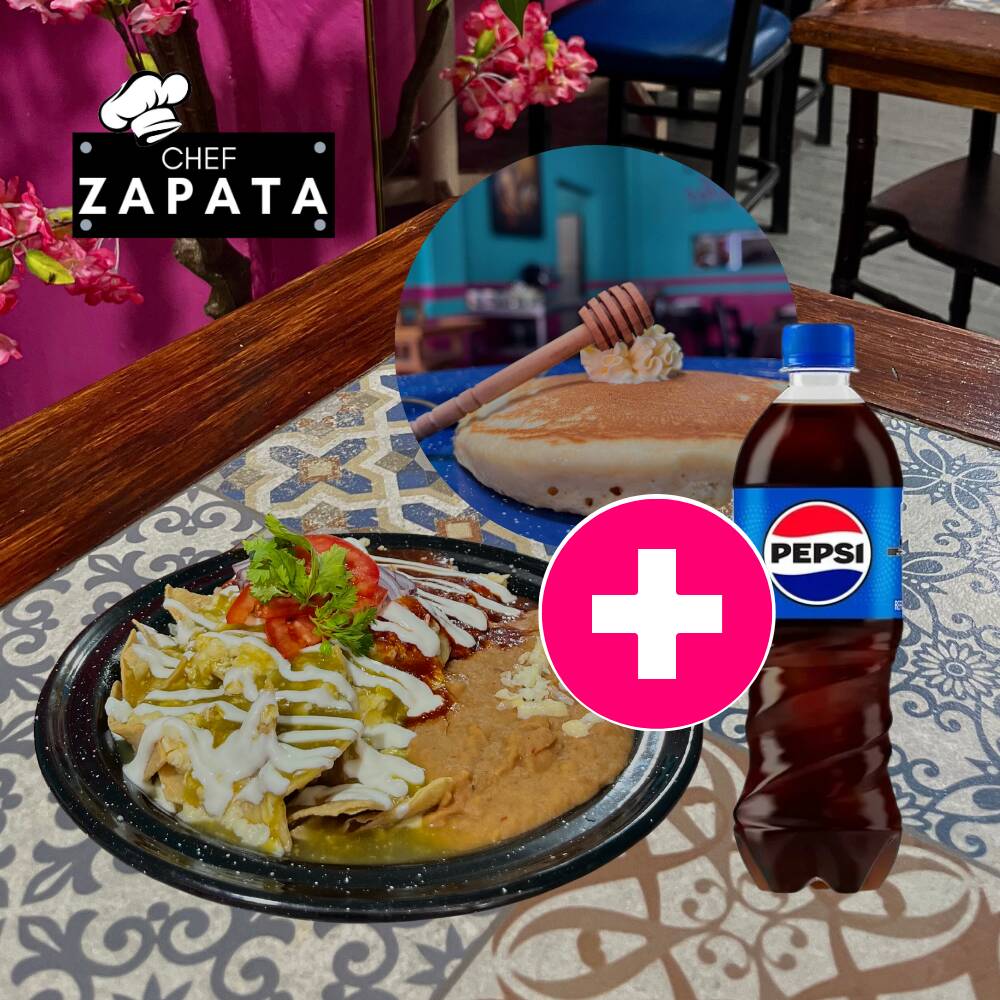 Pepsi 400 ml*1 + 1 Pieza de Hot Cake*1 + Chilaquiles Tradicionales*1