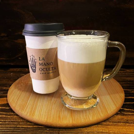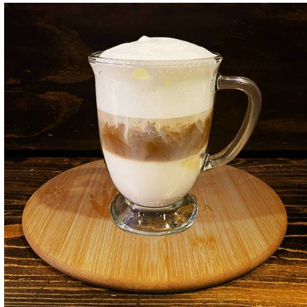 Shot doble de espresso en leche vaporizada y hielos (16 oz).