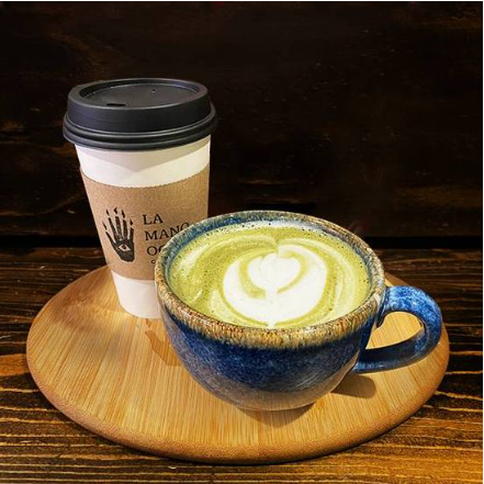 Té verde matcha en leche vaporizada con hielo (16 oz).