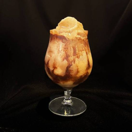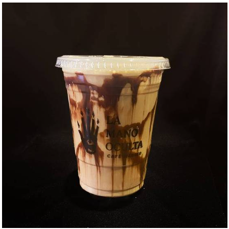 Shot doble de espresso con moka en leche vaporizada y hielos (16 oz).
