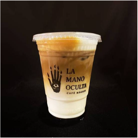 Shot doble de espresso en leche espumada y hielos (16 oz).