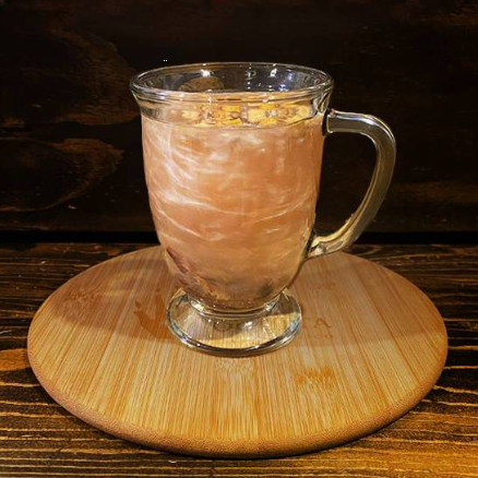 Shot doble de espresso con chai en leche vaporizada y hielos (16 oz).