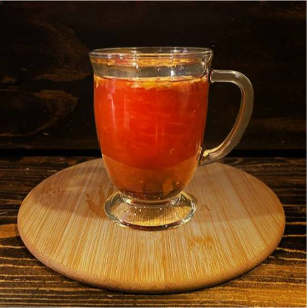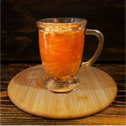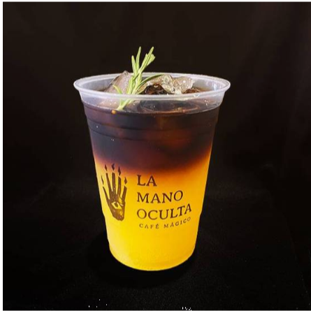 Doble shot de café con jugo de naranja y agua tónica en hielo con un toque de romero (16 oz).