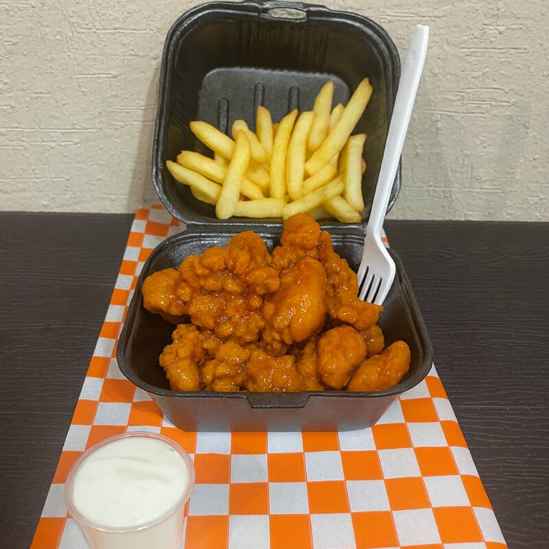 🍗🔥 250 g de boneless BBQ crujientes por fuera y suaves por dentro + 🥕🥒 verduras frescas. ¡Dulces, ahumados y deliciosos!