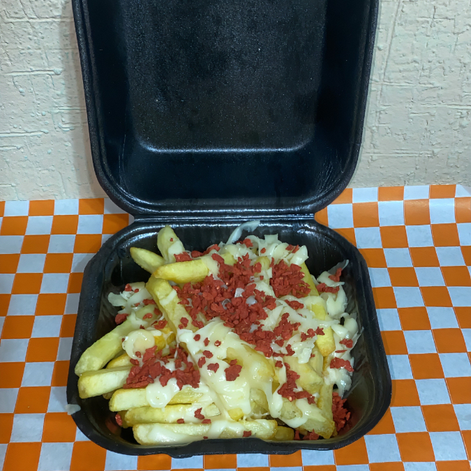 🍟🧀🥓 200 g de papas fritas con queso manchego y tocino en trocitos. ¡Cremosas, crujientes y súper antojables!