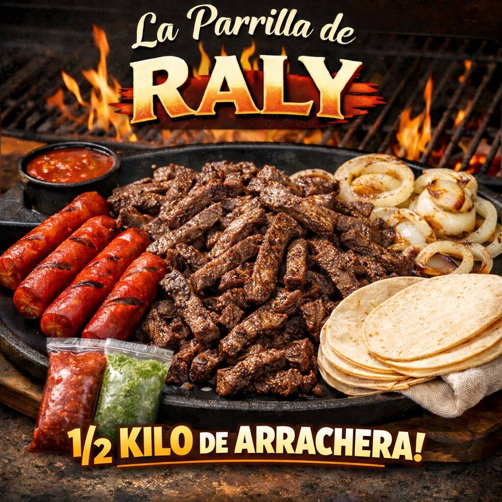1/2 de arrachera asada -incluye salchicha, salsa (verde y roja) tortillas y rica cebolla asada