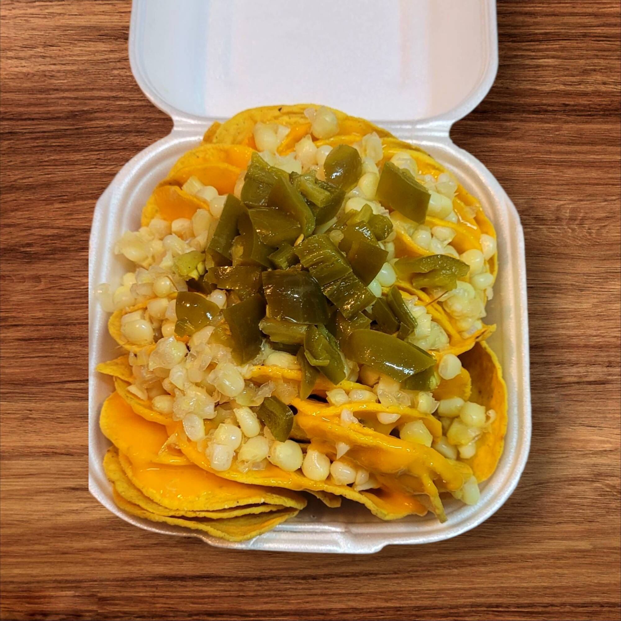 Queso, chiles jalapeños, frijoles o elote a elegir.