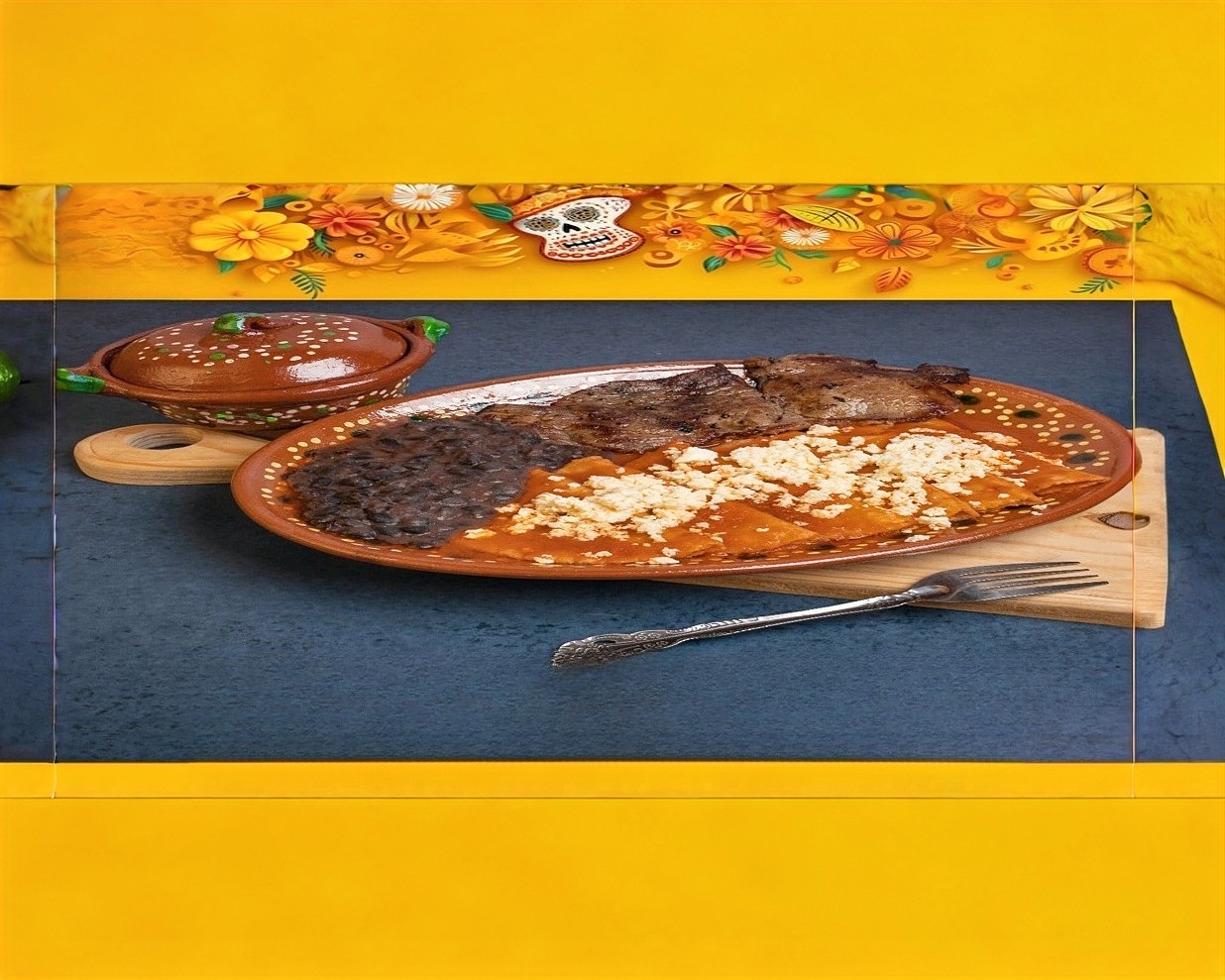 Tortillas de maíz recién hechas, estrujadas con manteca y bañadas en la salsa de tu elección, acompañadas de frijoles negros, queso y la proteína de tu elección.