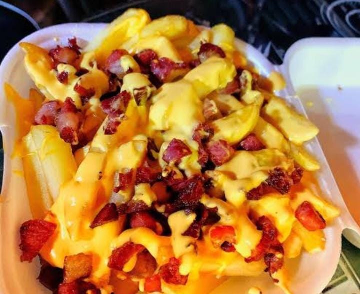 INCLUYE PAPAS FRITAS Y QUESO CON TOCINO DESIDRATADO.