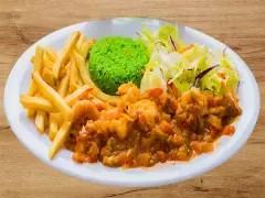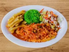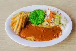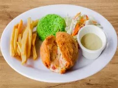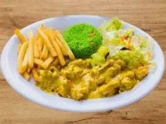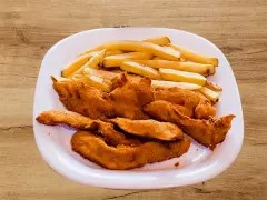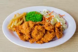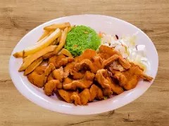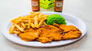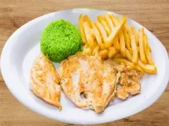 Pechuga de pollo ,papas a la francesa, arroz al cilantro