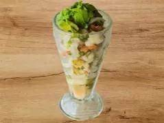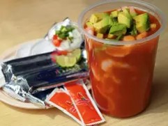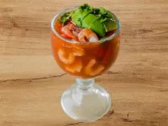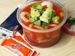 Camarón coctelero, zanahoria, tomate ,cebolla, aguacate y cilantro