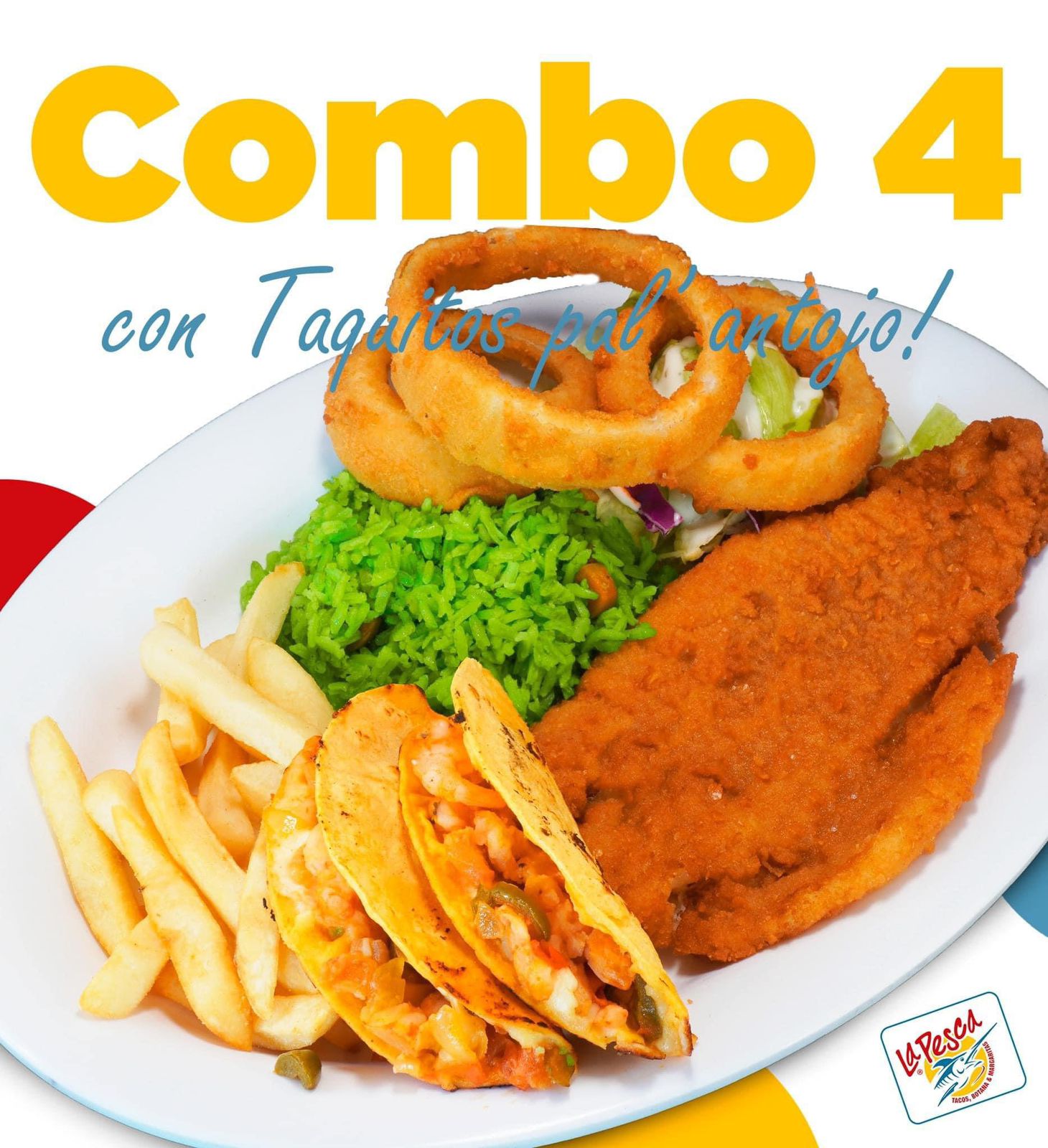 Combo 4 (1filete empanizado+ 2 tacos de camarón)