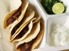 Disfruta de nuestro paquete de 3 taquitos de pollito al albañil (guisado con tomate, cebollita, pimiento verde y tocino) , con su bebida y su postre a un precio especial
