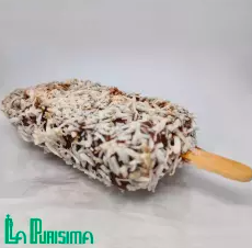 Base de vainilla, cubierta de chocolate Turín y coco natural.