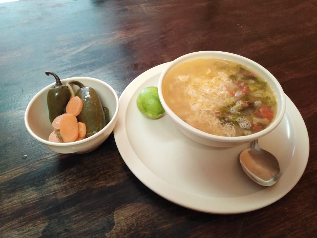 1 Litro de caldo, queso, aguacate y chile chipotle.