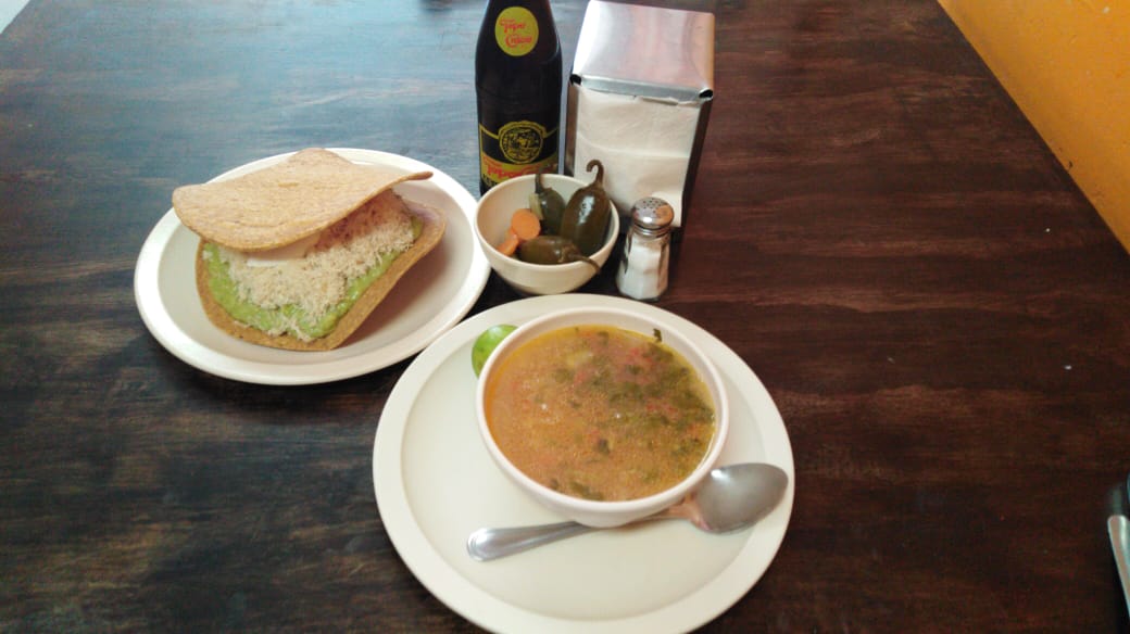 Tostada grande*1 + Consomé 12 Oz*1 + Refresco*1