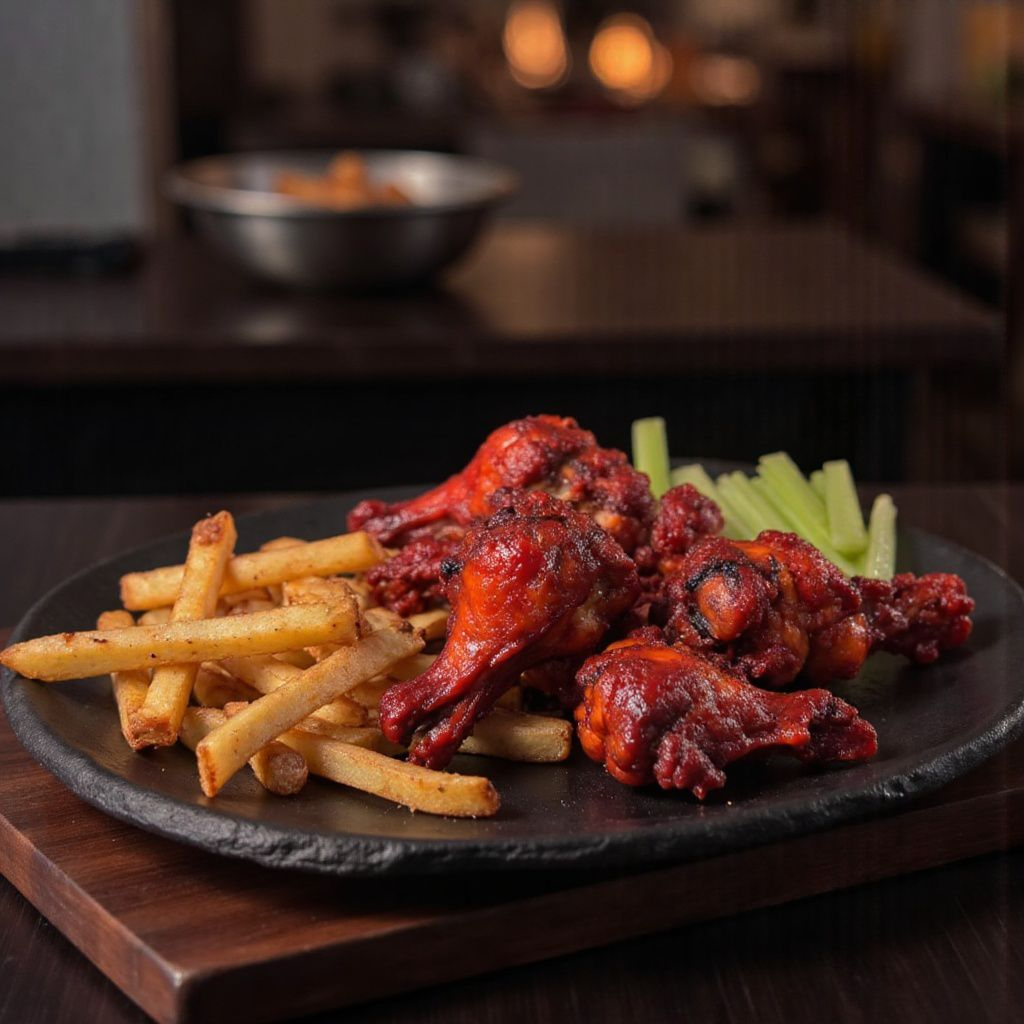 Alitas con papas y refresco