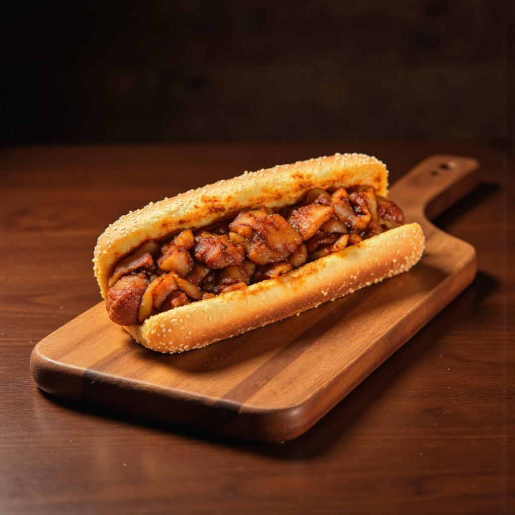 Crujiente y delicioso. Salchicha jumbo de pavo o polaca con pan con ajonjolí, aderezo de la casa y bacon, acompañado con jalapeños.