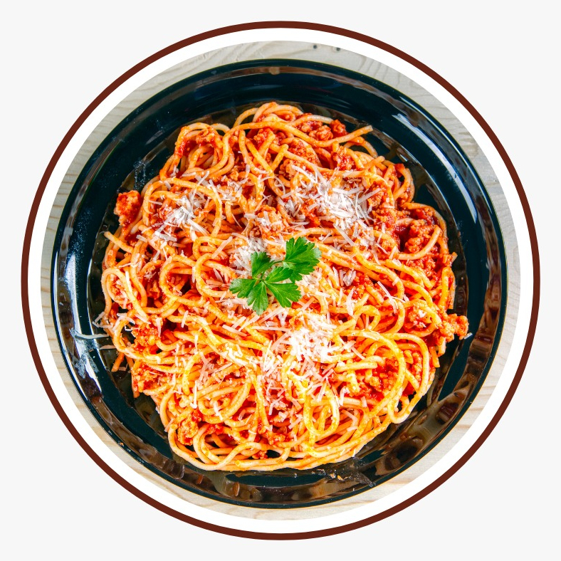 El acompañamiento ideal. Spaghetti de la casa con la receta secreta.