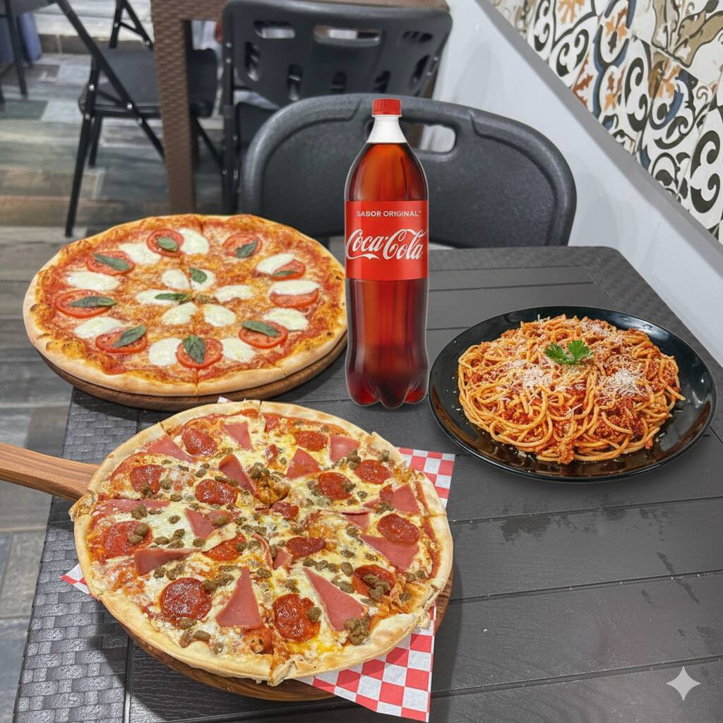 Combo 2 Pizzas Promoción y Spaghetti (1/4)