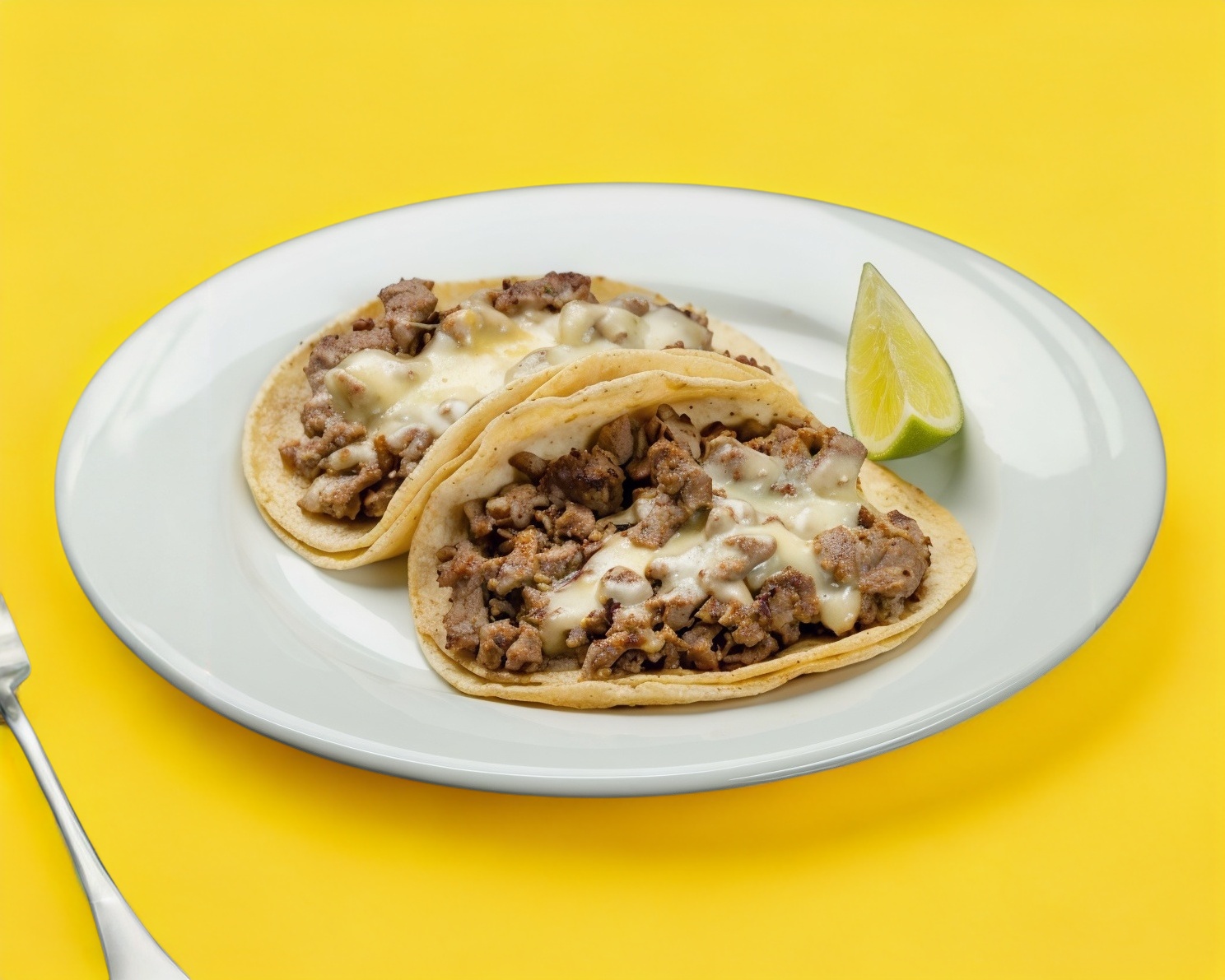 5 tacos de bistec cebolla salsa limones cebolla salsa y limón para una persona