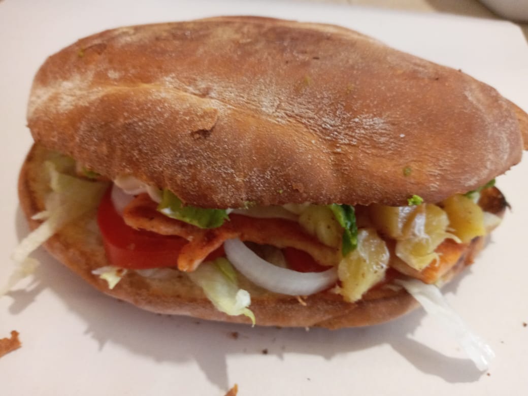 Pollo, piña y queso panela. frijol,lechuga cebolla,tomate,aguacate y mayonesa