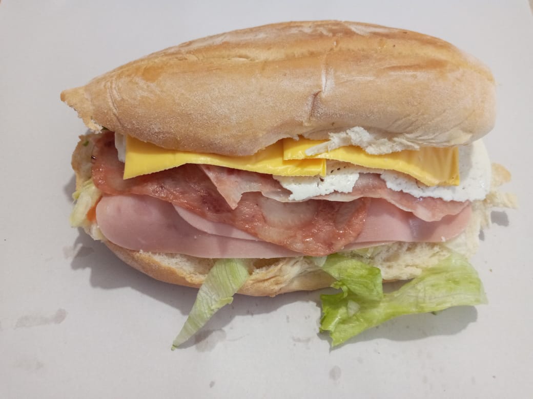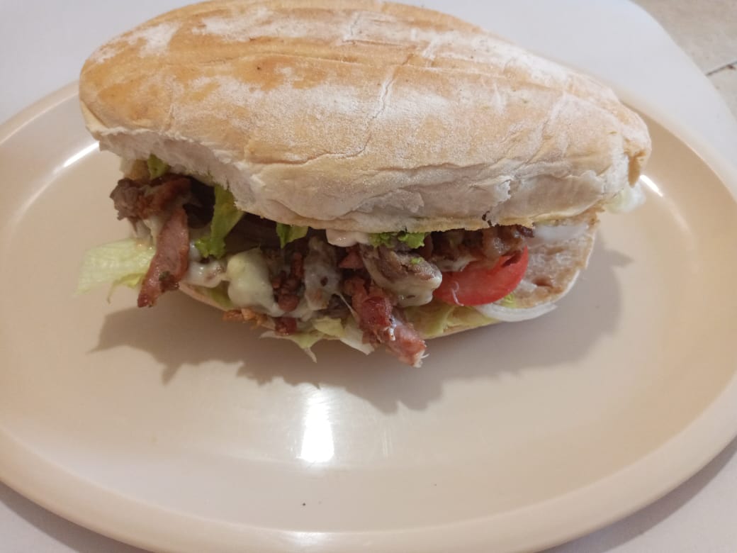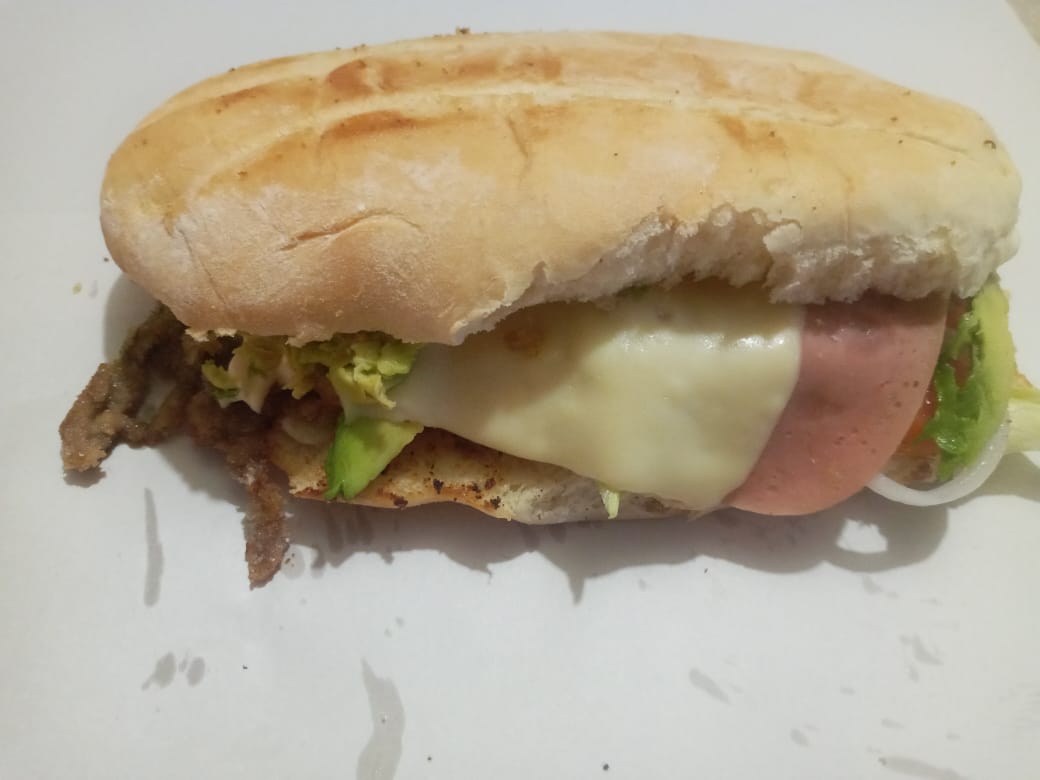 Milanesa,queso y salami frijol,lechuga cebolla,tomate,aguacate y mayonesa