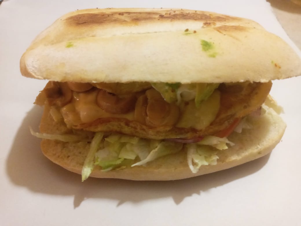 Huevo, champiñones y queso manchego. frijol,lechuga cebolla,tomate,aguacate y mayonesa