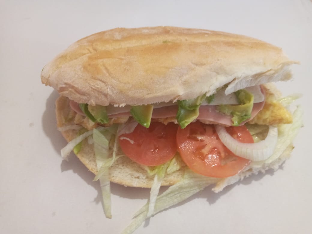 Jamón, manchego y salami. frijol,lechuga cebolla,tomate,aguacate y mayonesa