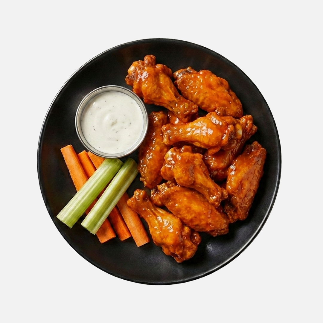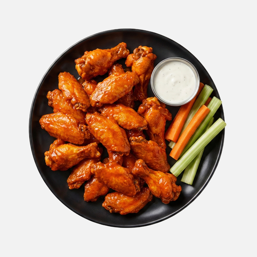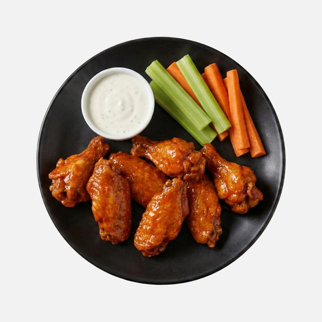 1 kg de alitas bañadas o naturales, acompañadas de apio,zanahoria y aderezo
