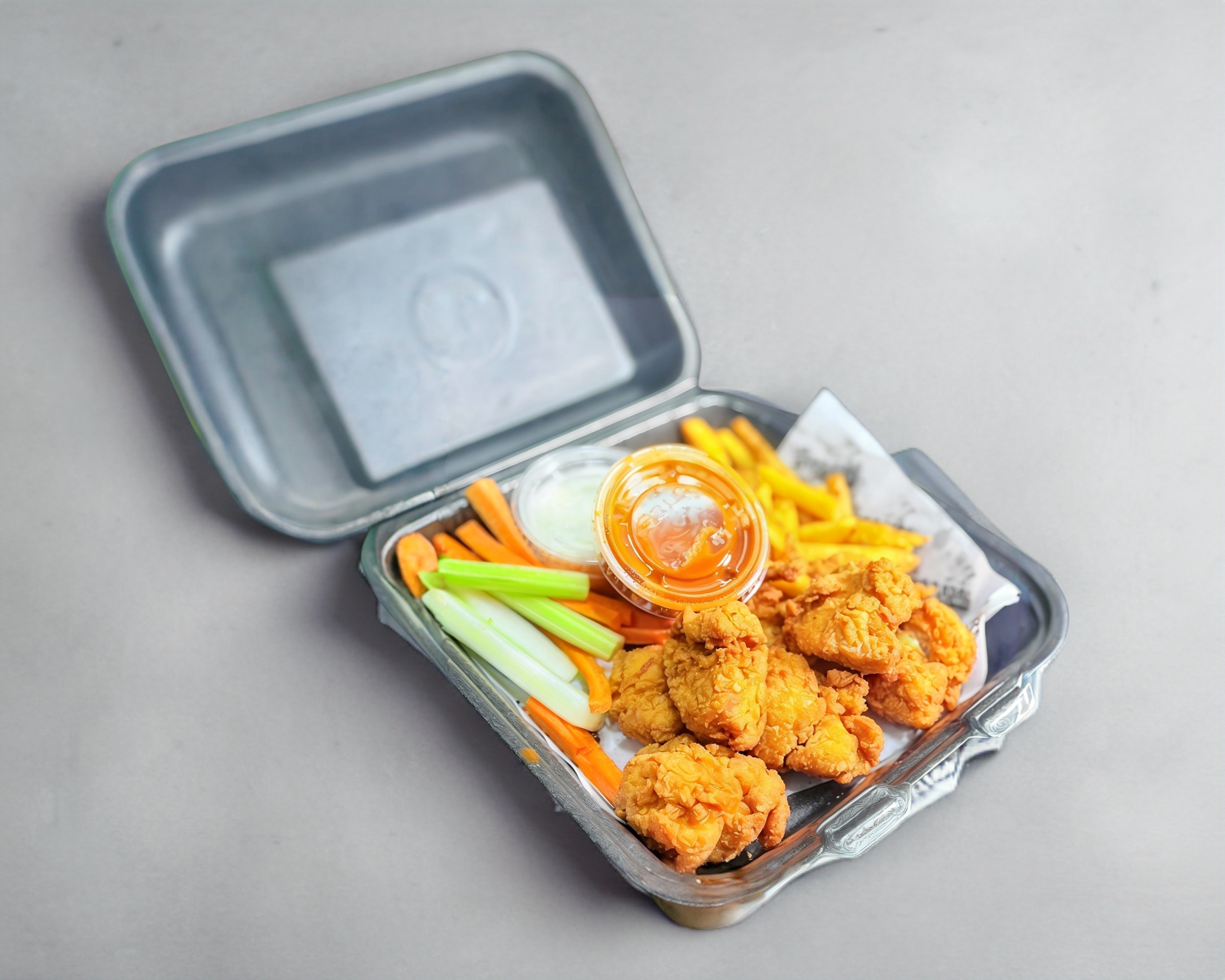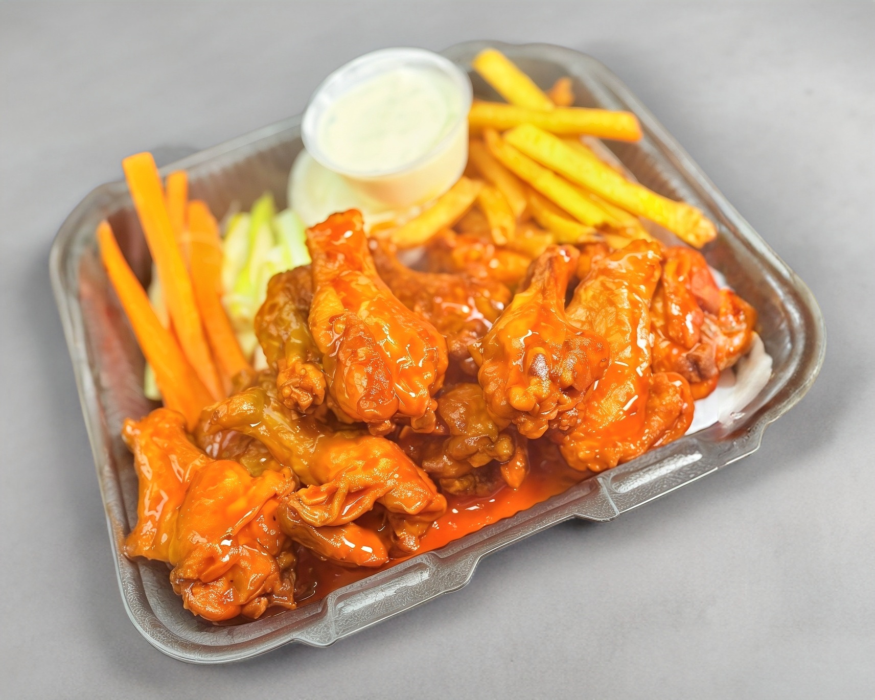 7 boneles aproximimadamente, con vegetales, papas y aderezo ranch