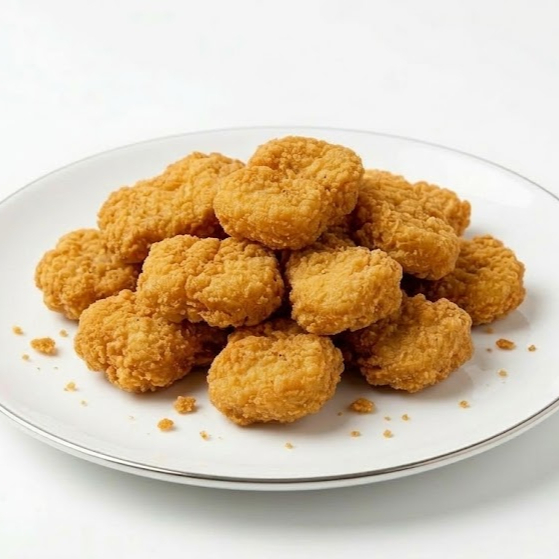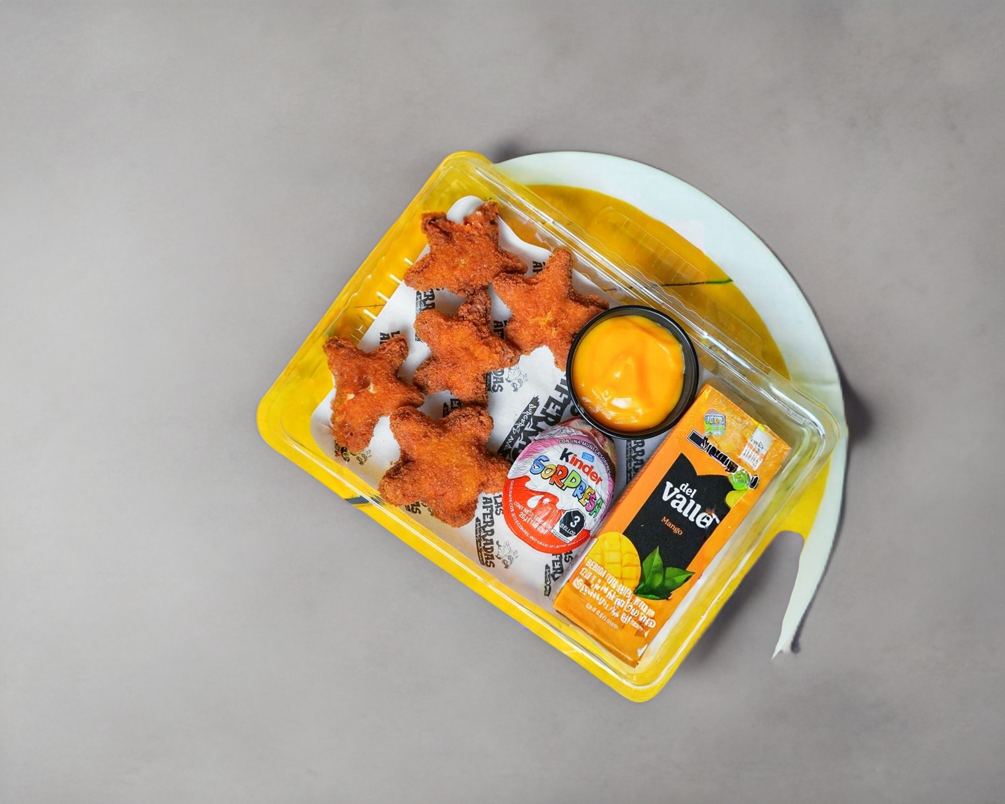 5 nuggets en forma de estrella acompañados de salsa de queso