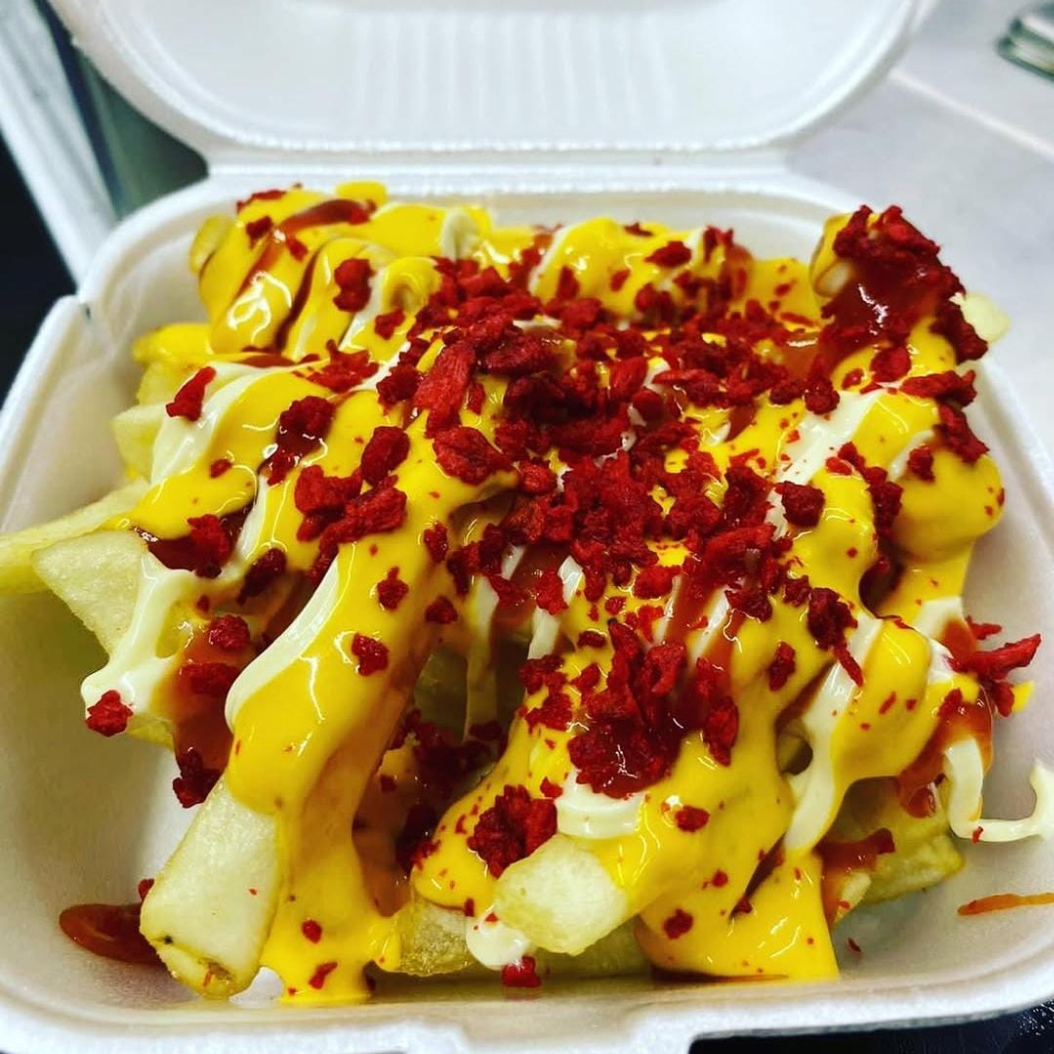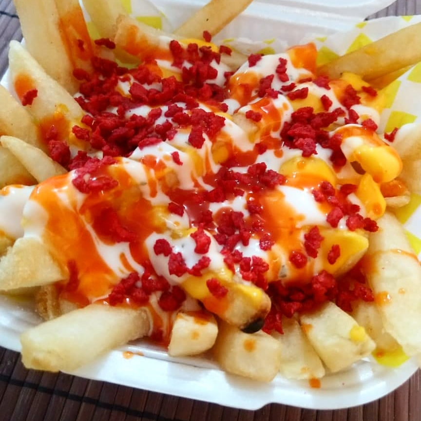 triple carne , queso, lechuga , tomate, cebolla y aderezos