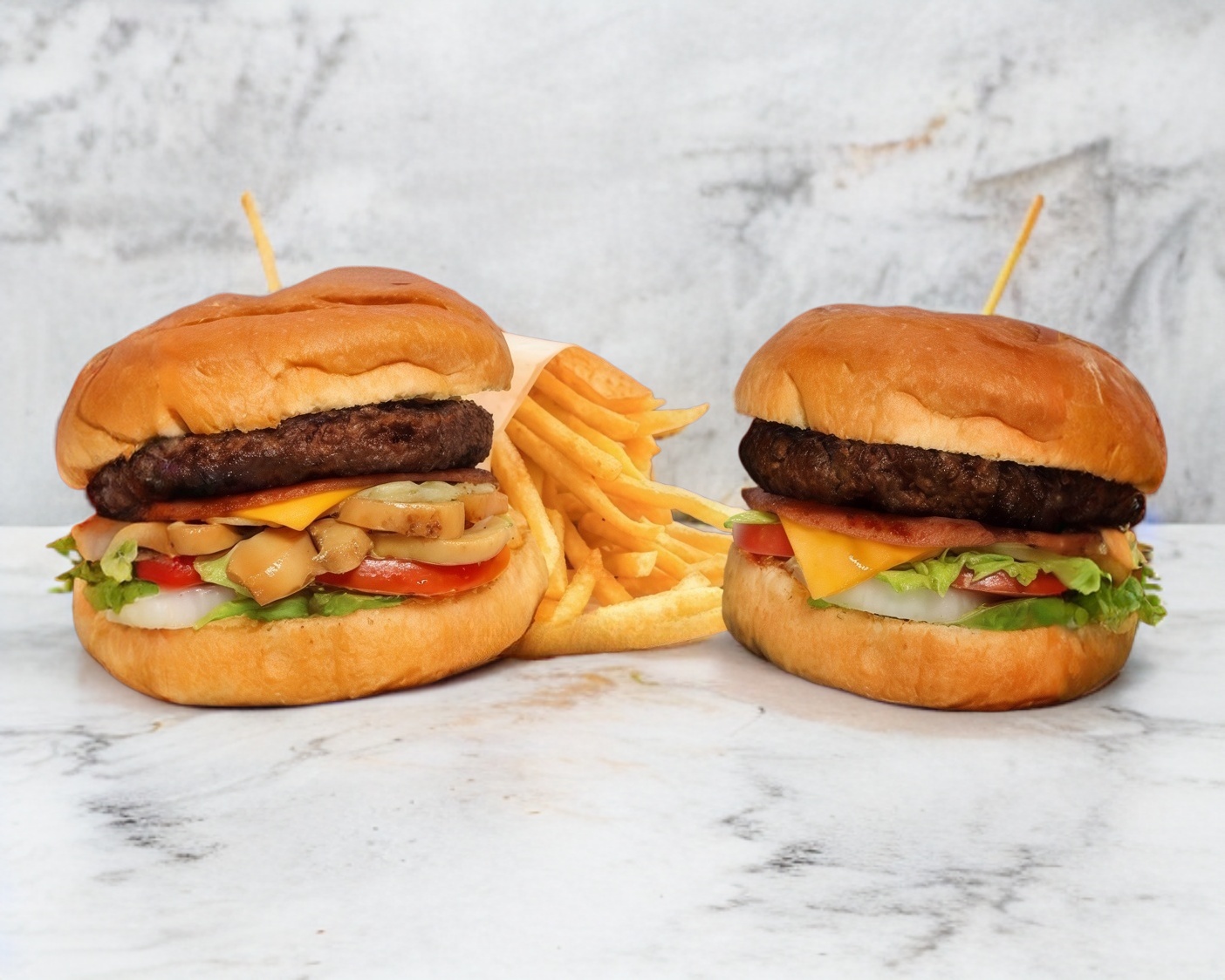 Ordena una Burger con Champiñones con Papas a la Francesa y Las de Hugo! Te Regala una Burger Especial