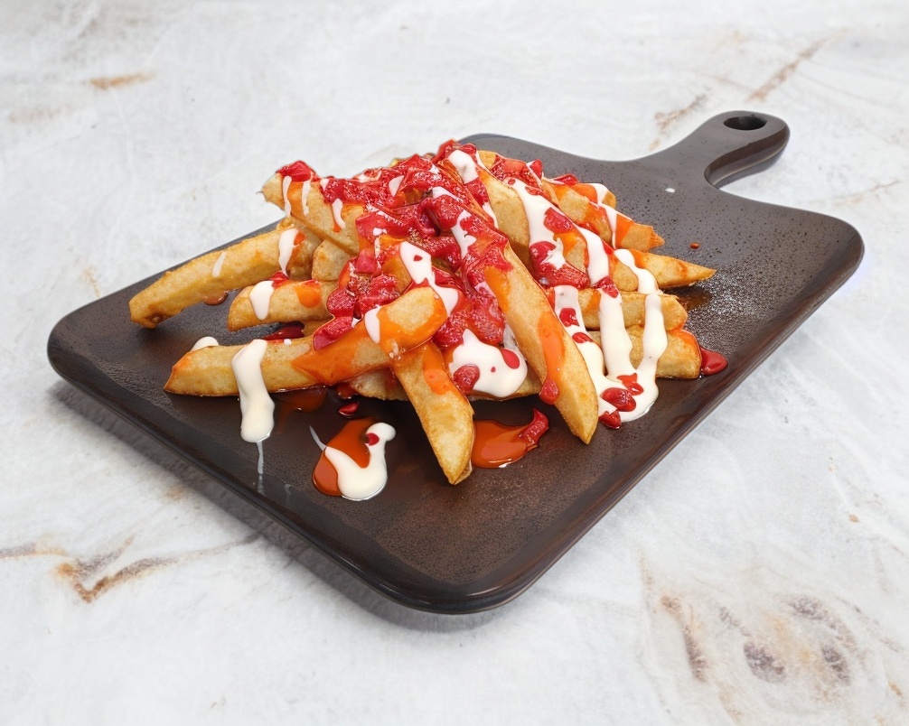 300gr de papas a la francesa,bañadas en la salsa de tu elección.