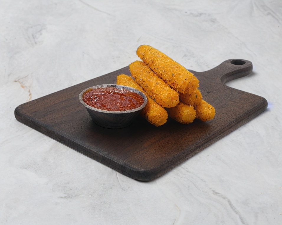 6 deditos de queso mozarella ,empanizados y acompañados de salsa marinara