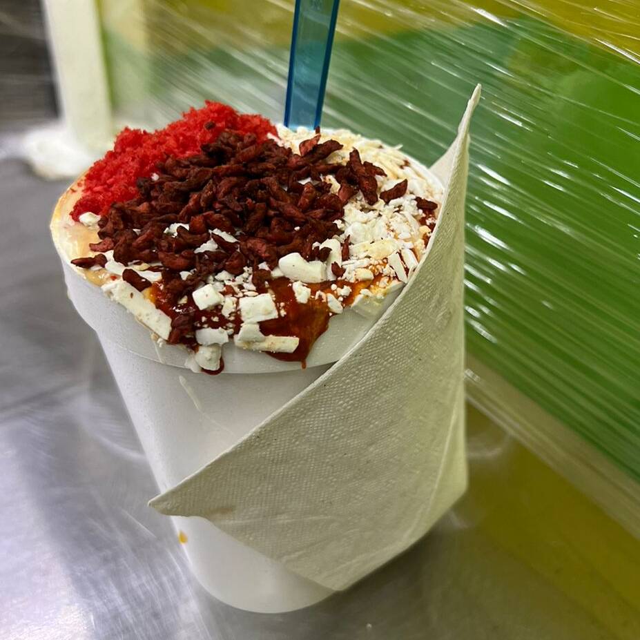 Conchitas preparadas con elote y tus aderezos favoritos de calidad.