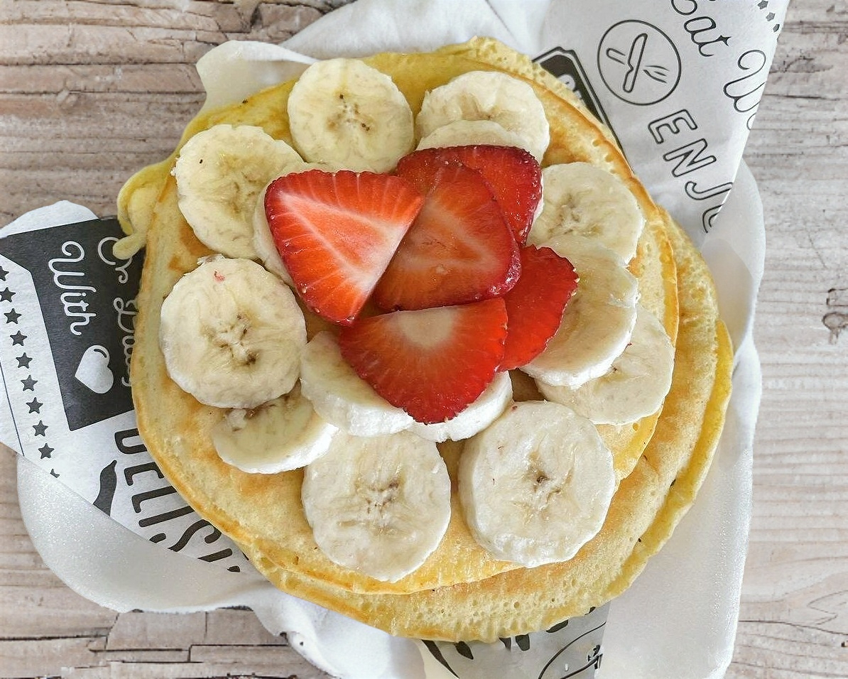 Orden de 3 hotcakes con fruta y toppings a elegir