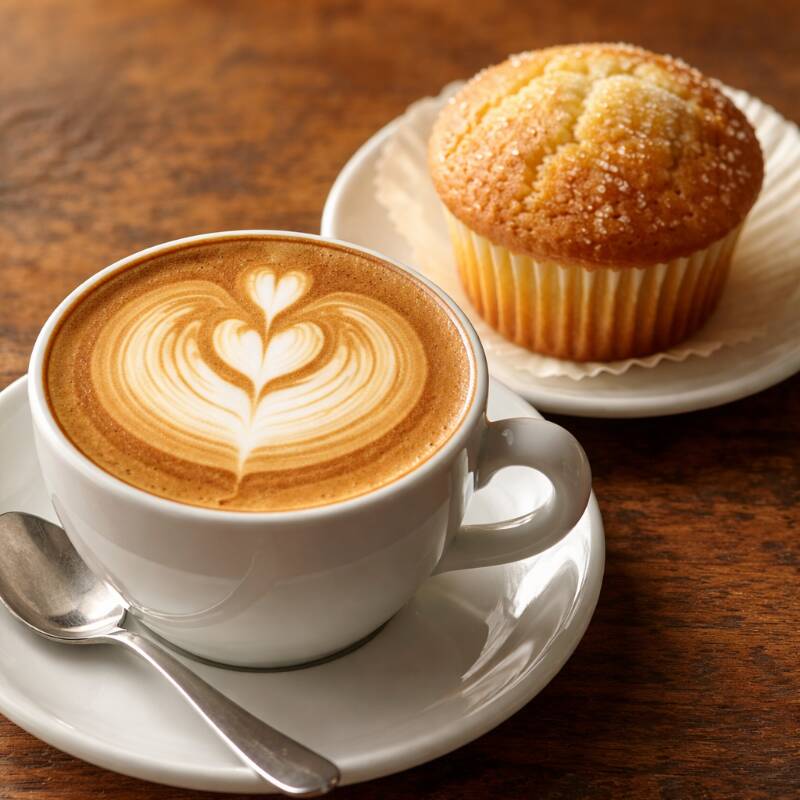 Café espresso con leche caliente y espuma suave, de sabor equilibrado y textura cremosa.