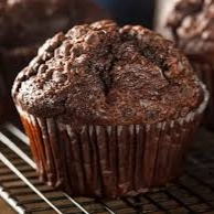 Panecillo de chocolate, suave y húmedo, con trozos de chocolate derretidos.