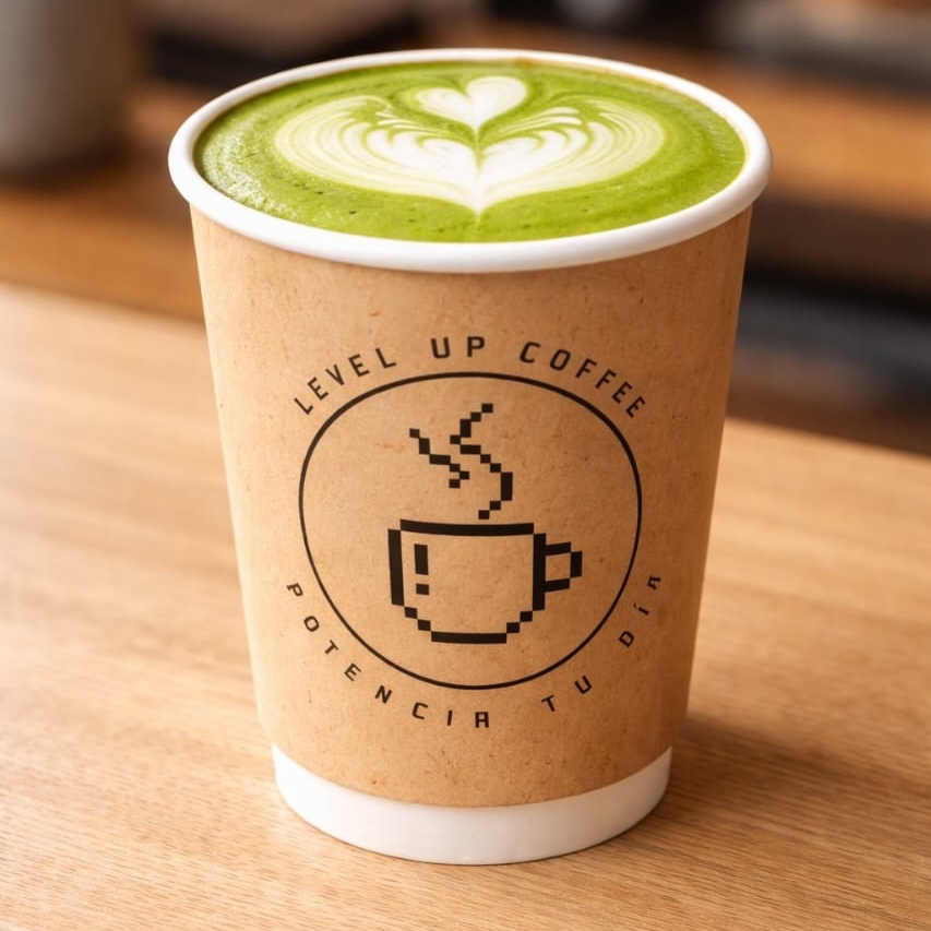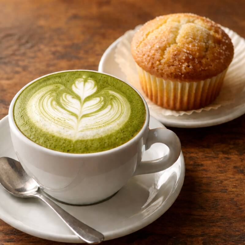 Té matcha con leche caliente, de sabor suave y ligeramente herbal, con textura cremosa.